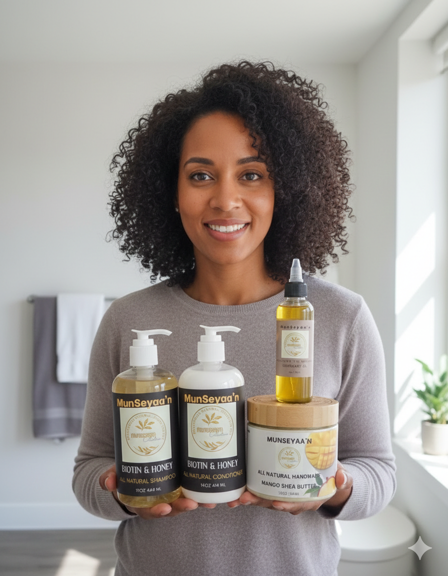 We’re inspired by the strength of nature and its ability to nurture healthy, radiant hair and skin. Every product we craft is handmade, chemical‑free, and cruelty‑free; designed to nourish, protect, and care for all hair textures and skin types. Rooted in a love for self‑care and natural beauty, we create gentle yet effective formulas that help you feel confident, empowered, and authentically you.
